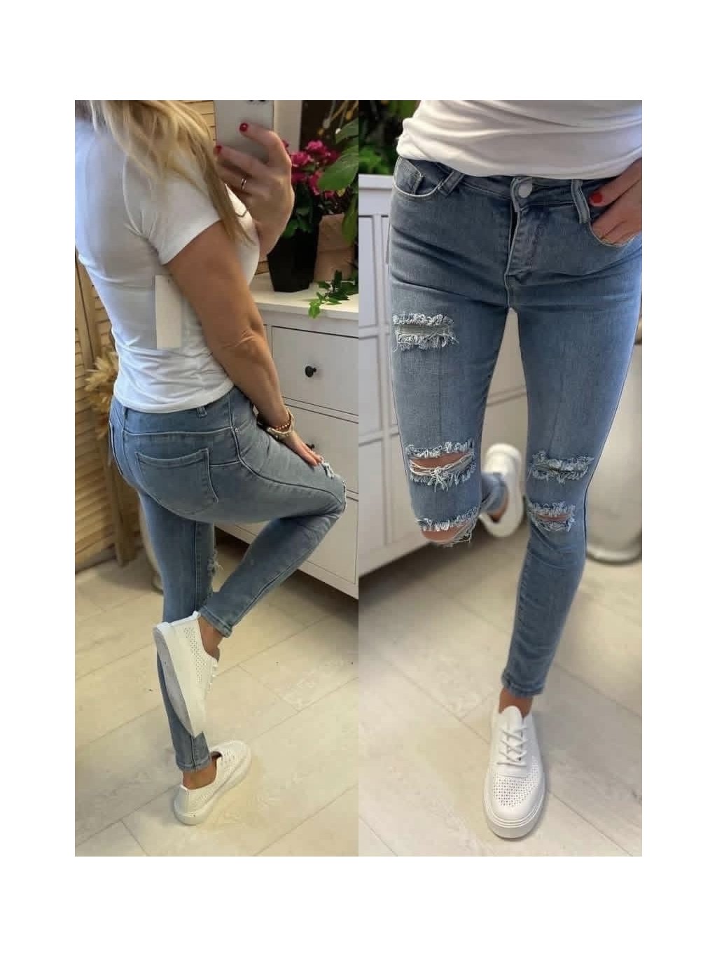 Stylové džíny s jemným trháním, které krásně sedí a vytvarují postavu.