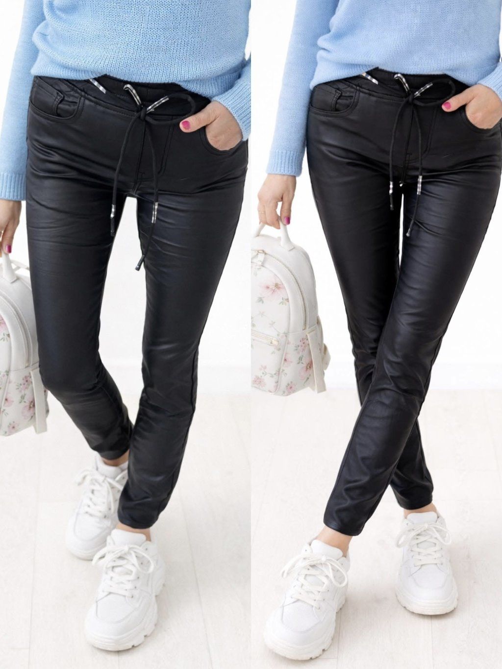 Stylové a pohodlné koženkové kalhoty s jemným zateplením. Krásně pruží, přizpůsobí se postavě a díky šňůrce v pase perfektně sedí. Ideální k teniskám i kotníkům do chladnějších dnů.