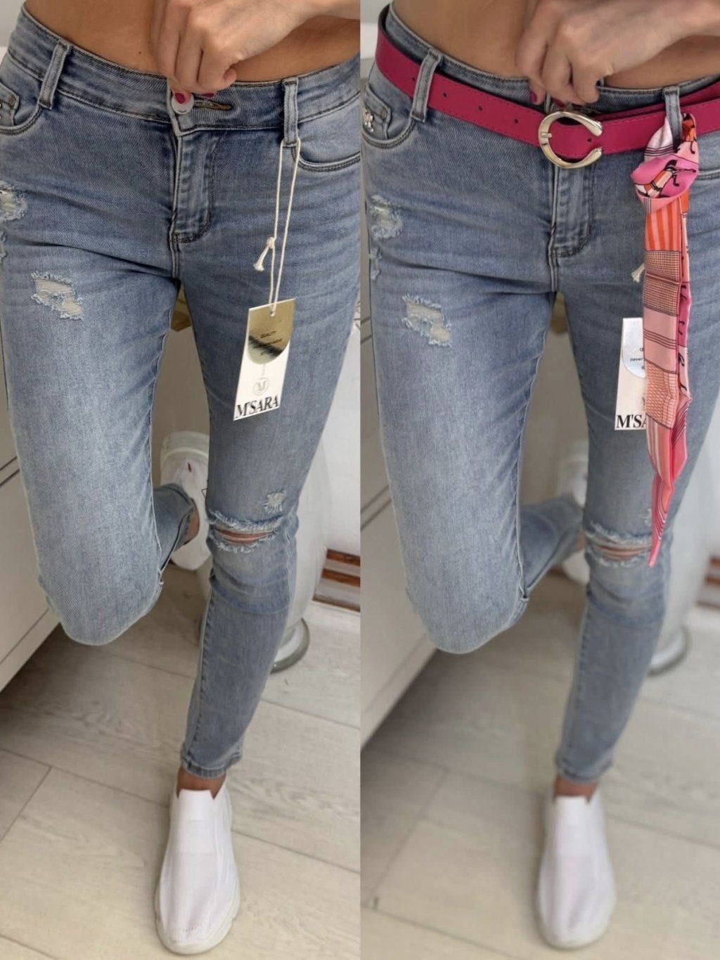 PRUŽNÉ DŽÍNY BELLA s páskem