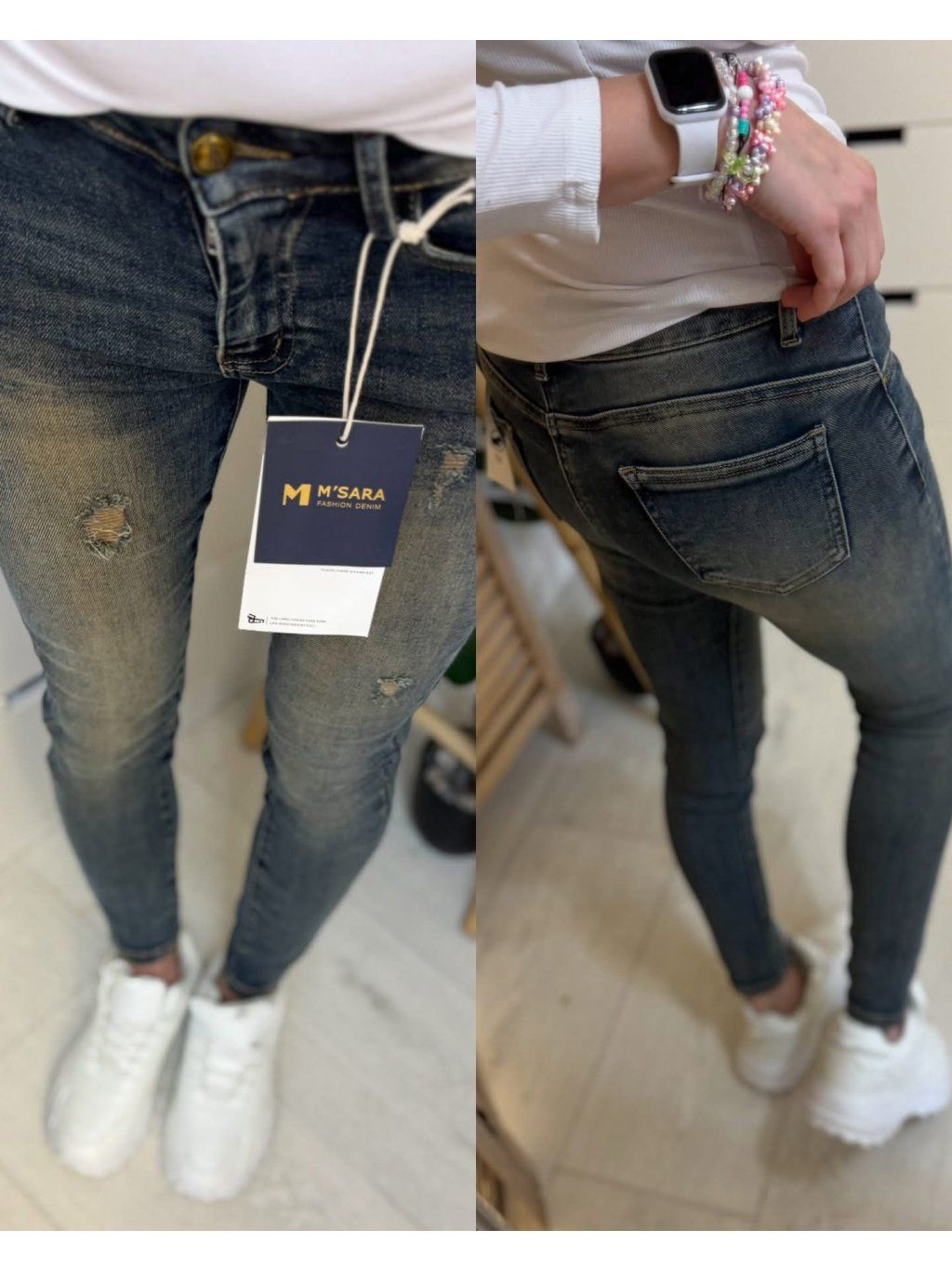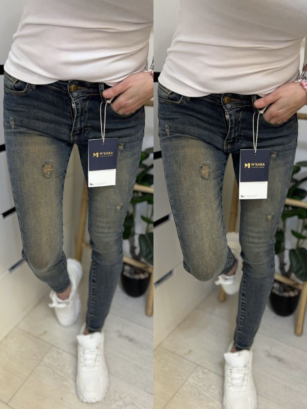 Moderní tmavší denim s lehkým vyšisováním – skvělé na každý den 💙